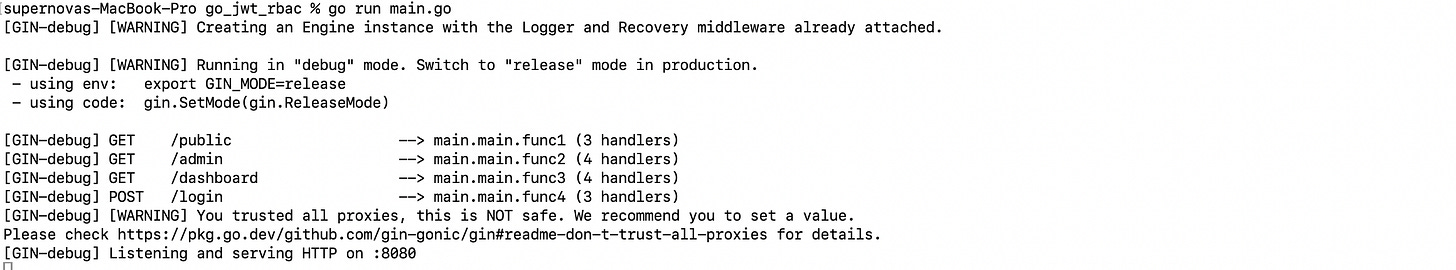 Note: complete code can be retrieved from https://github.com/novrian6/go_jwt_rbac.git